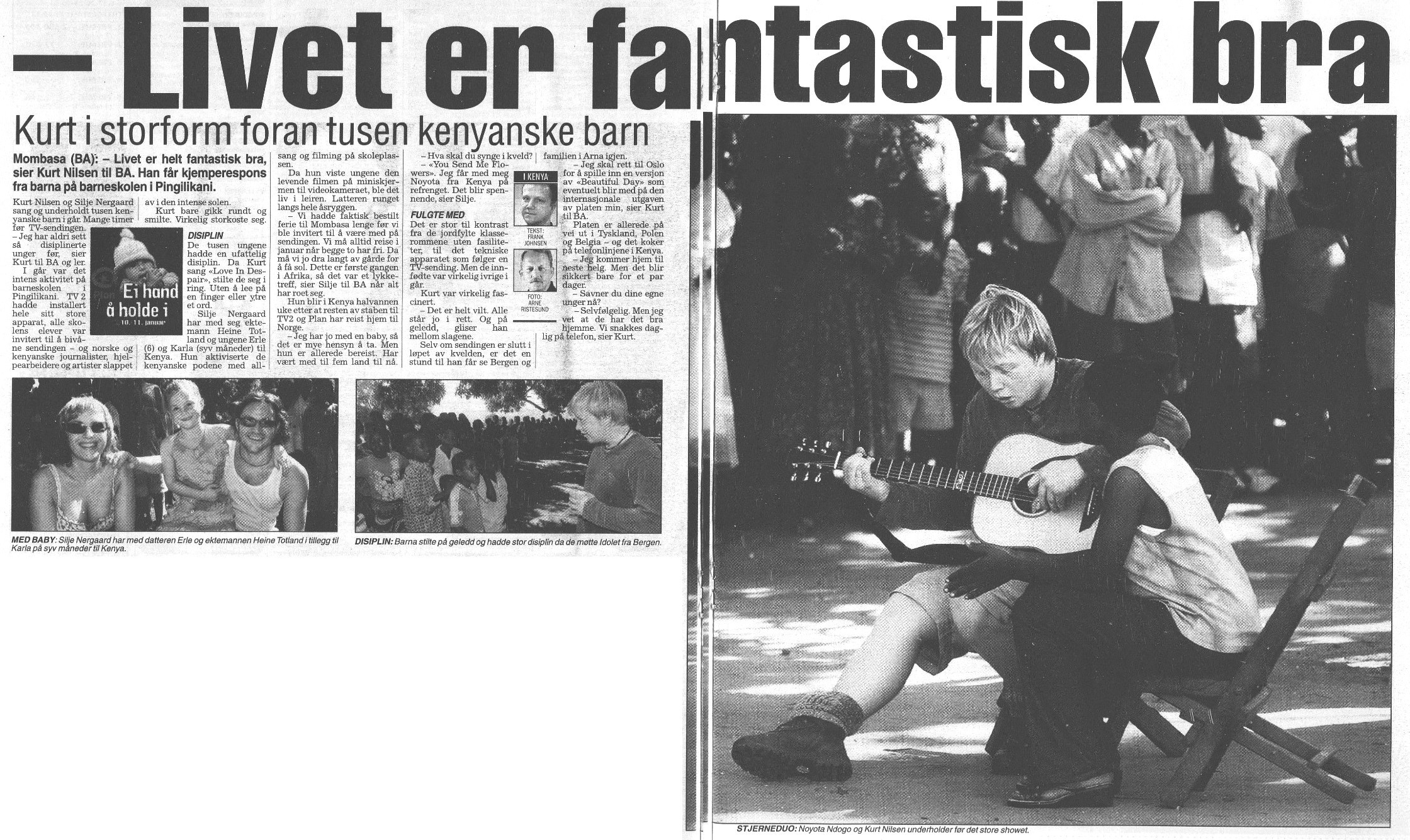 Kurt Nilsen and Silje Nergaard sang and entertained a thousand Kenyan children yesterday. Many hours before the TV broadcast. ''I've never seen such disciplined kids before,'' Kurt tells BA, laughing.