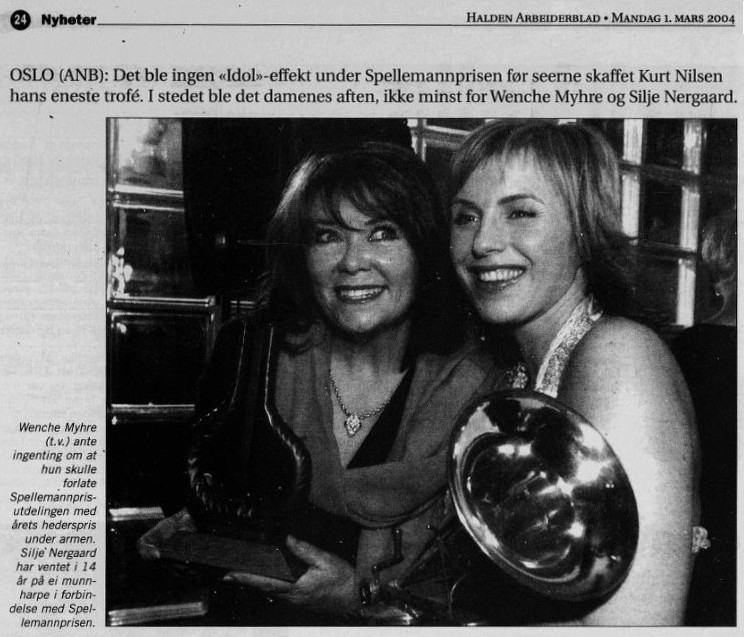 OSLO (ANB): There was no ''Idol'' effect during the Spellemannpris ceremony before the viewers' votes earned Kurt Nilsen his only trophy. Instead, it was a ladies' night, not least for Wenche Myhre and Silje Nergaard.