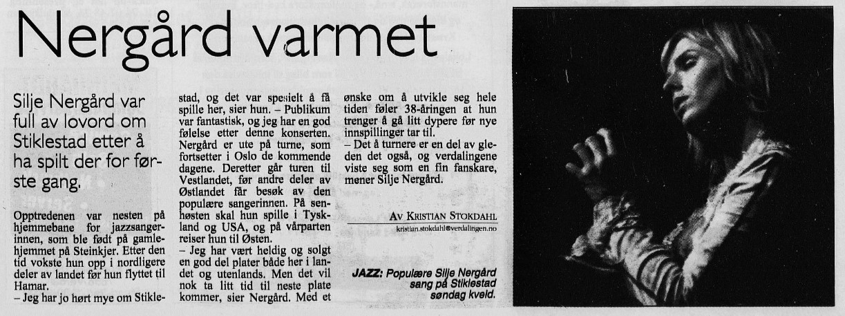 "Touring is part of the joy, too, and the Verdal audience proved to be a nice fan base," says Silje Nergaard.